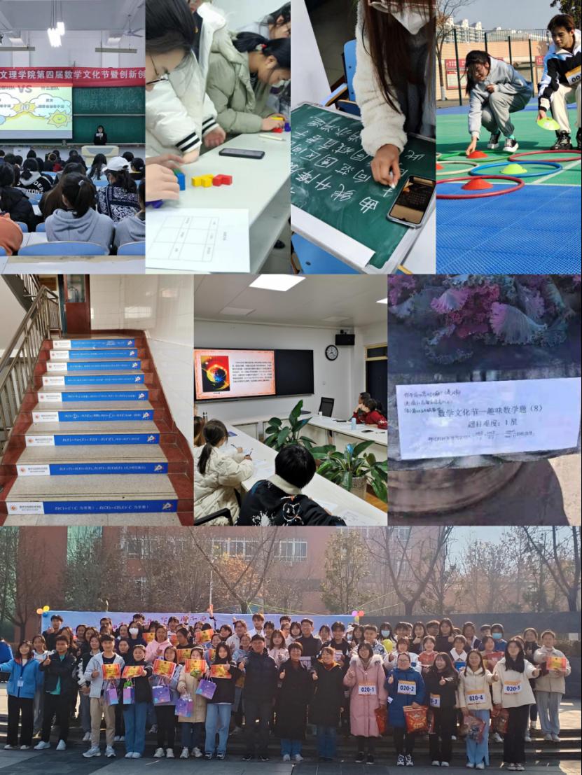 12月6日—12月10日 ,在思贤楼3、4楼展出数学文化节展板,展板内容主要包括:教学楼阶梯粘贴数学公式;历届数学文化节回顾;主题为“万象幻变皆由数,百年创新始成学”的数学文化节主展板;以“乐跑数学”为主题的手绘画板;以“光影杯”为主题的摄影比赛手绘画板;以“鱼跃杯”为主题的辩论赛手绘画板;以“三笔字大赛”为主题的作品展板及宣传板;以“数字涂鸦”为主题手绘画板。另有“正大杯”全国老员工市场调查与分析大赛、“互联网+”老员工创新创业大赛、全国老员工数学建模竞赛、全国老员工数学竞赛等资料介绍,供广大师生学习和参观。