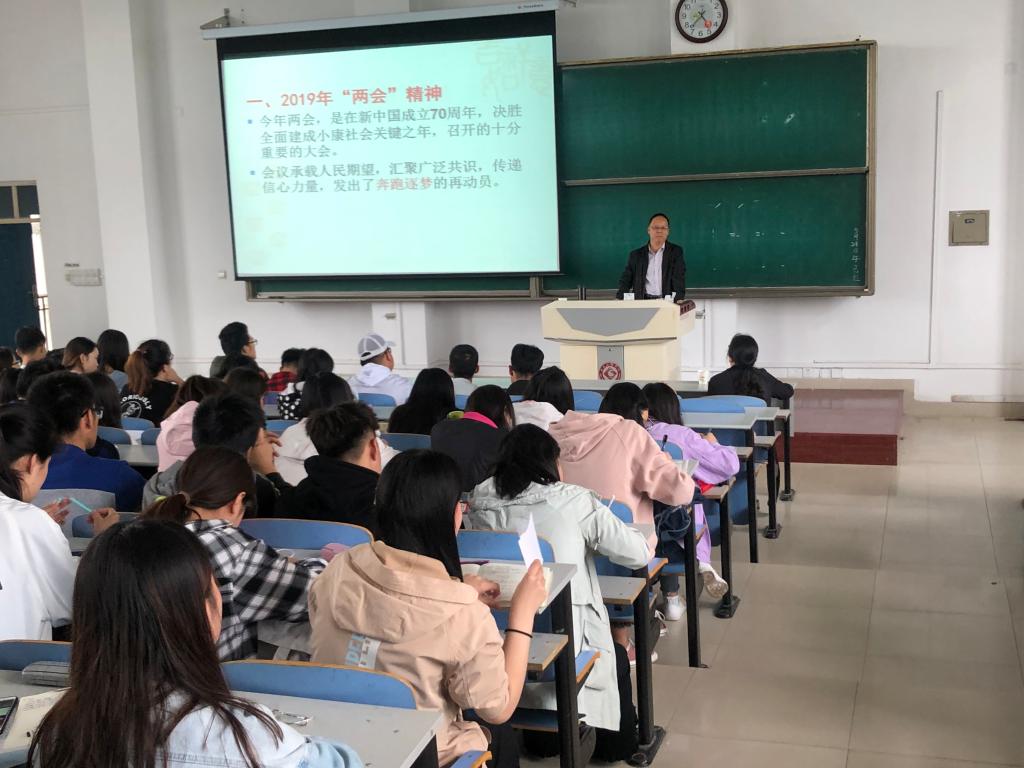 郝满义在总结讲话中勉励同学们面临新形势、新挑战,要学会做人、如何做事、如何学习,如何提高自己,把“两会”精神践行于自己的学习生活工作之中,充分发挥专业优势,为建设社会主义现代化强国贡献力量。