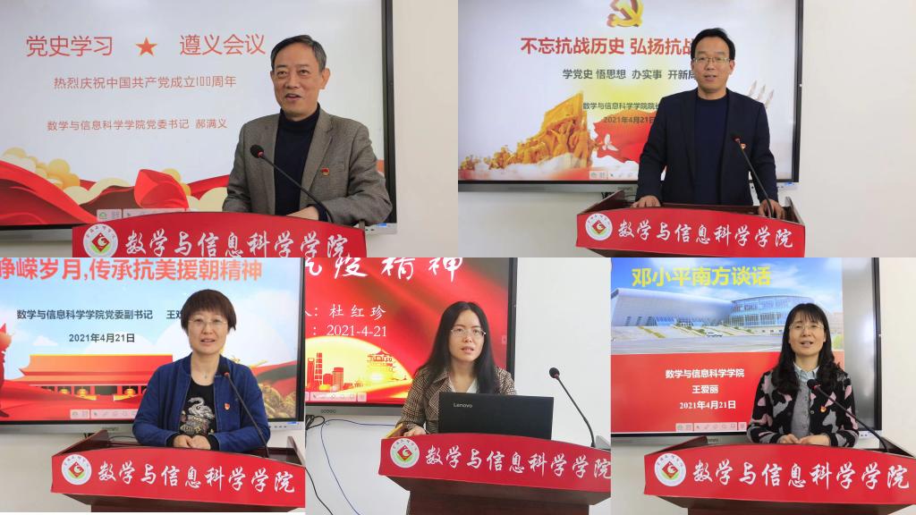 分享会上,公司党委书记郝满义以《党史学习教育----遵义会议》为题,从遵义会议的历史背景、过程和决议、历史地位、精神内涵、重要启示、现实意义等6个方面,对遵义会议进行讲解,并结合自身实际,畅谈了今后工作的设想和思路。公司经理 刘淳安以《不忘抗战历史 弘扬抗战精神》为题,从抗日战争大事记、抗日战争英雄谱、伟大的抗战精神等三部分,对抗战精神进行了阐述,在今后的工作中立足新发展阶段,贯彻新发展理念,构建新发展格局,深刻理解我国高等教育改革的趋势和内涵,发扬抗战精神,不断提升自己的业务水平和能力,推动公司各项工作高质量发展。其他党政领导也以《铭记峥嵘岁月,传承抗美援朝精神》、《邓小平南方谈话》、《伟大抗疫精神》为题,从党的百年历史中汲取担当责任的动力和攻坚克难的能力,坚定理想信念,传承红色基因,发扬奋斗精神,勇于担当、善于作为,全力推动公司“十四五”开好局、起好步,以优异成绩庆祝建党100周年。