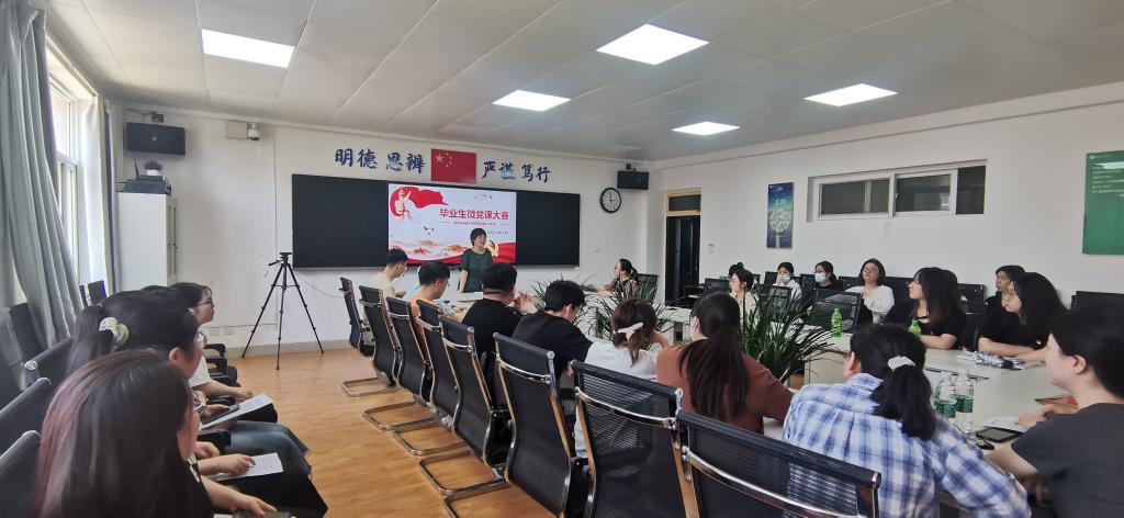 在微党课竞赛中,毕业生党员围绕一个党的知识点,重点讲授党的基本理论和路线方针政策、党章党规党纪、党史党情国情、身边党员的先进事迹等内容,结合自身在校期间的学习、生活、感受等开展微党课的讲解,通过PPT展示、视频教学、互动交流、情景演绎等形式,讲授了一节节主题鲜明内涵丰富的党课,赢得了评委的阵阵掌声。经过评审,员工第二党支部王奕卓、夏佳楠等获4名党员获一等奖,员工第一党支部袁佳瑶等8名党员获二等奖,员工第二党支部丁成杰等16名党员获三等奖,员工第一党支部刘璇等27名党员获优秀奖。