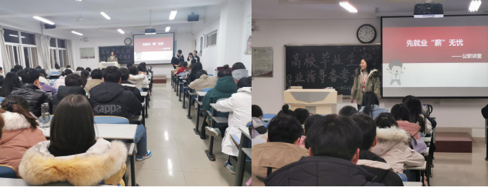 12月1日,公司在思贤楼426教室举办了2021公职类招聘考试及就业备考讲座。本次讲座邀请中公教育冯海英老师主讲, 2017级、2018级三个专业部分员工参加。讲座由辅导员王耀兰主持。