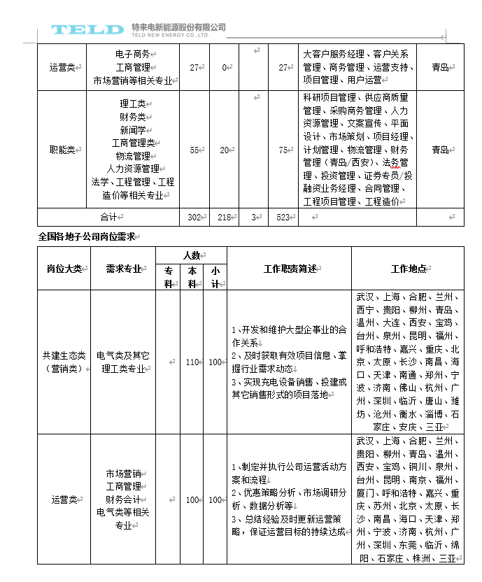 招聘邮箱: zhaohy5@teld.cn