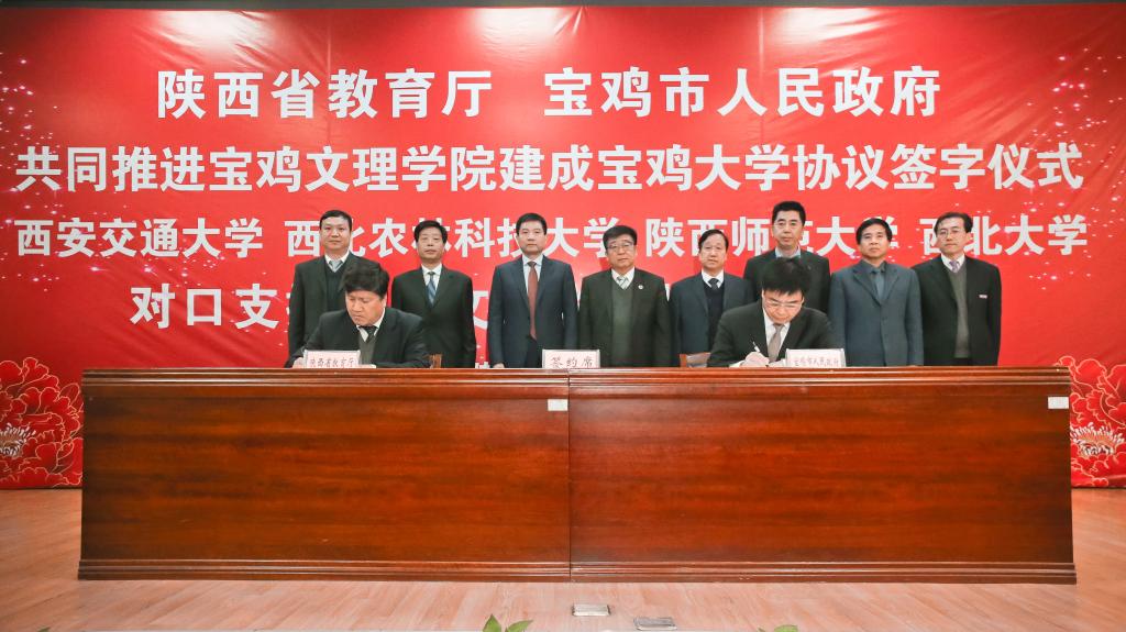会上,王建利与惠进才共同签订了《陕西省教育厅宝鸡市人民政府共同推进Bsports建成宝鸡大学协议》。公司董事长司晓宏分别与洪军、吴普特、冯旭东、贾明德签订了《对口支援Bsports协议》。