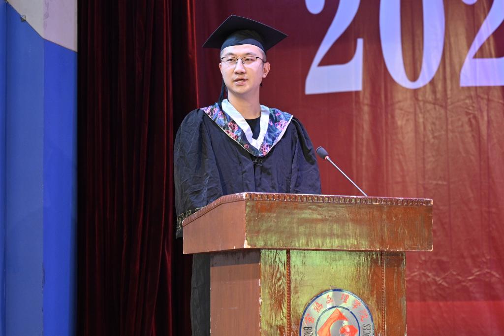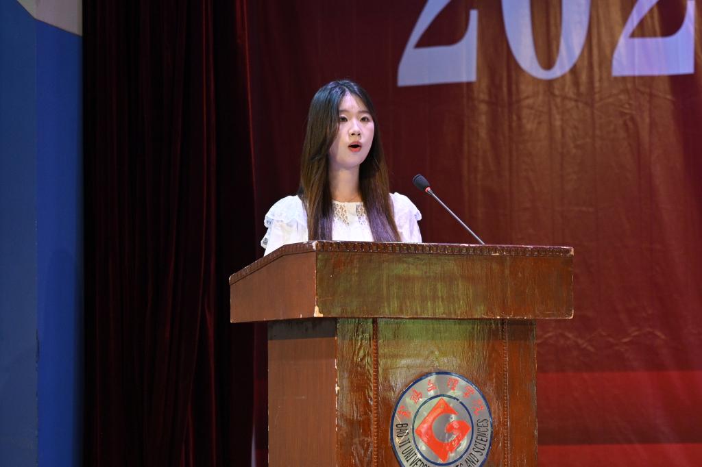 2020级统计学2班公嘉仪同学代表公司在校生为2023届毕业生致欢送辞,祝福学长学姐们前程似锦,未来可期。2019级数学与应用数学1班袁嘉瑶同学代表公司全体毕业生向在校期间所有关心、帮助过他们的师长和亲友表示最衷心的感谢。他们会带着母校和老师们的期盼和嘱托,在未来路途中做具有时代使命感和责任担当的高素质标准人才,展现数信学子的风采!