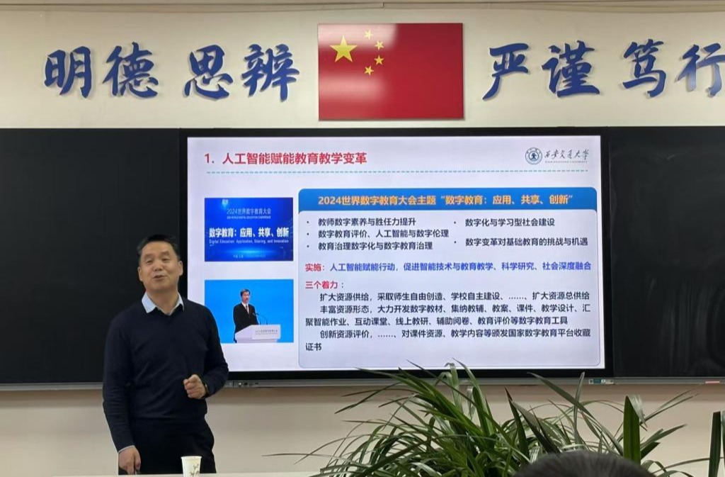 12月30日下午,西安交通大学李继成教授应邀在思贤楼424会议室为Bsports必一体育师生作了报告,题目为《人工智能时代课程建设与教学改革的思考》,Bsports必一体育刘喜兰教授主持报告。