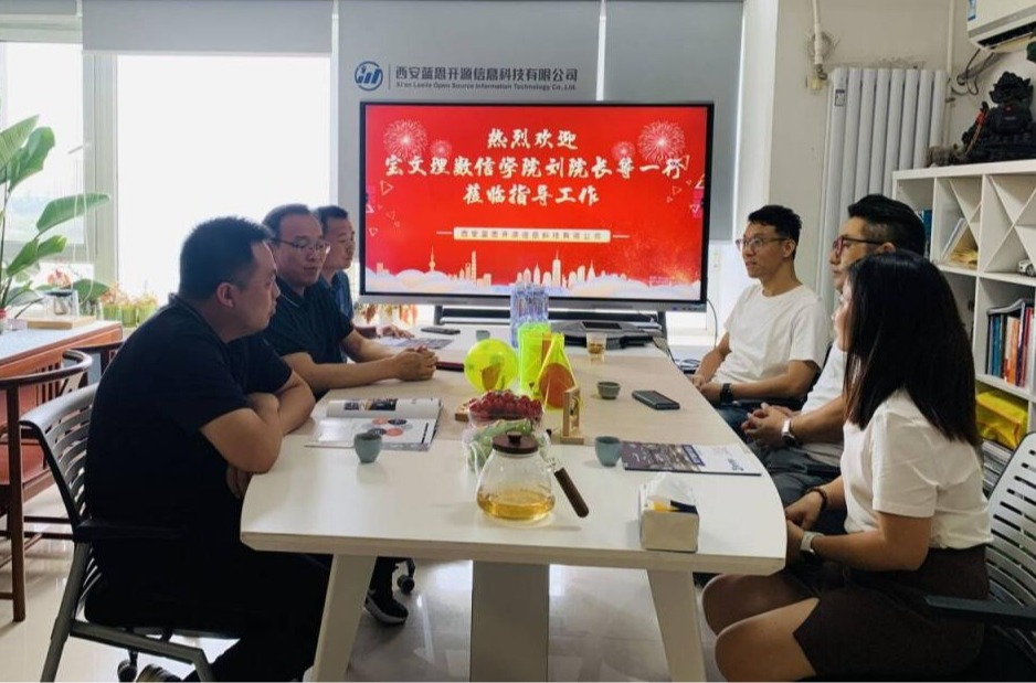 6月5日至6日,数信公司经理刘淳安一行3人前往陕西航城蓝鸥教育科技有限公司、西安蓝思开源信息科技有限公司开展访企拓岗专项活动。