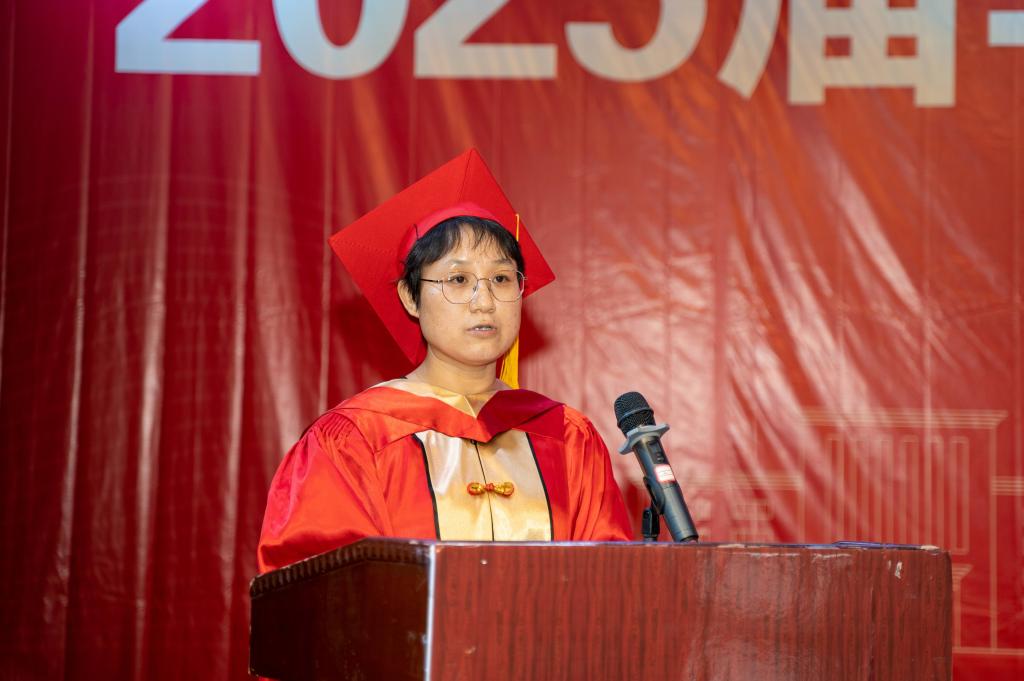 许俊莲副教授代表公司全体教师向即将开启人生新篇章的2025届毕业生致以最诚挚的祝贺和最衷心的祝福。祝愿同学们此去归来依旧少年心,不要忘记自己是Bsports必一体育的一员,希望同学们心系公司,常回家看看。