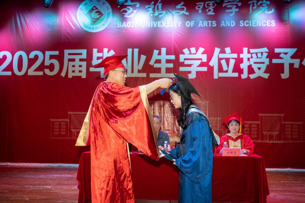 学位授予仪式在庄严的国歌声中拉开序幕。刘淳安宣读了2025届毕业生的硕士学位和学士学位授予决定。刘淳安、许俊莲分别为硕士学位和学士学位获得者代表扶正流苏、颁授学位证书,并合影留念。