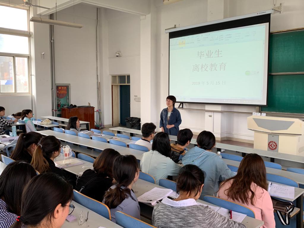 515日上午,公司在思贤楼420召开毕业生教育会议,副书记王欢,毕业班班主任、辅导员和全体毕业生参加了此次会议。辅导员王耀兰就毕业生的档案派遣、毕业典礼、宿舍卫生、文明离校等方面进行了具体安排和说明。王欢结合会议内容,希望同学们要正确把握当前的就业形势,提高适应社会的能力,保持学习的热情;二是要以积极的心态面对就业、情感、学业等方面的压力;三是要增强安全意识和纪律意识,遵守公司各项规章制度和毕业生离校各项规定,积极参与毕业生教育活动。
