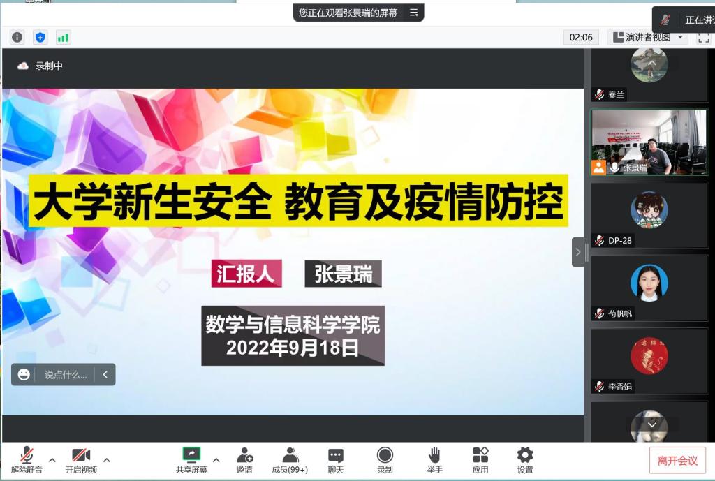 9月17日,公司2022级研究生、本科生共同参与线上入学教育主题会议。各班新生班主任以文明养成与大学适应性教育为主题,开启全体新生入学教育“第一课”。