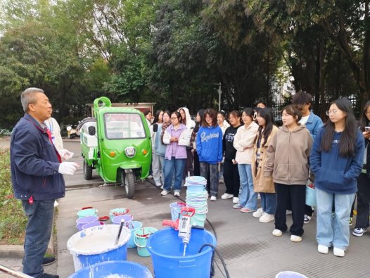 活动开始,2022级统计学周媛对本次活动流程进行简单介绍,并对提前划分好的各小组成员进行点名,强调了活动过程中的注意事项,并带领大家分配粉刷区域,领取相关工具进行刷树活动。