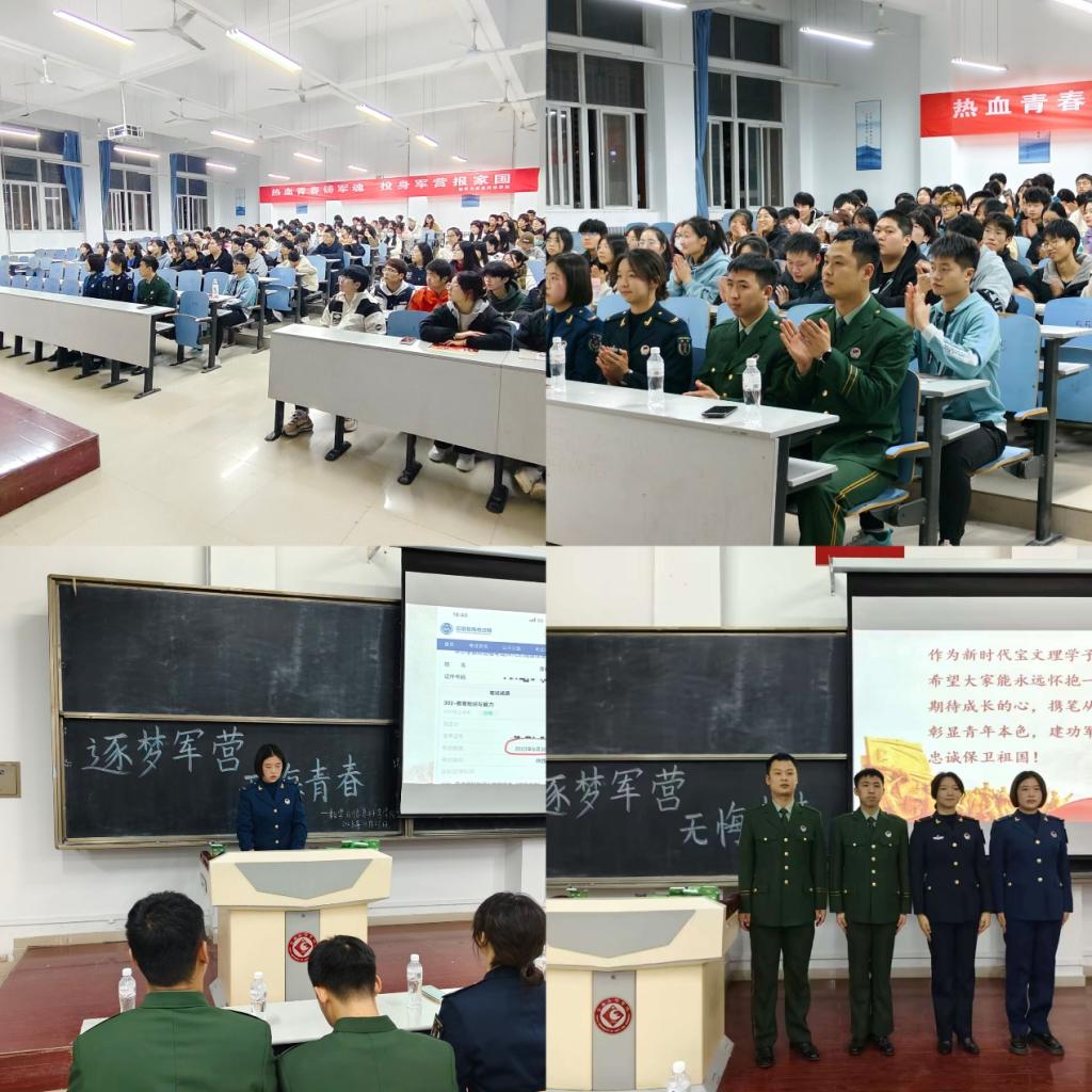 为进一步落实国家征兵工作要求,帮助青年老员工全面了解征兵政策,激发应征入伍热情,11月23日,公司在思贤楼408教室开展“逐梦军营,青春无悔”征兵入伍宣讲活动。公司2020级毕业生、部分2021级、2022级员工共计160余人参加了活动,活动由辅导员魏研主持。