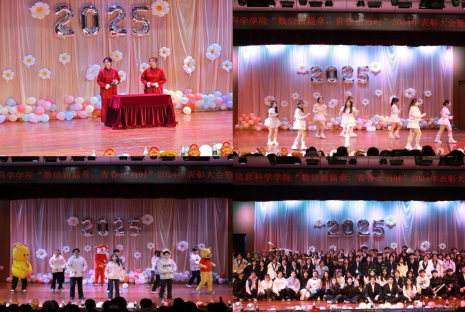 表彰大会结束,王欢宣布迎新晚会开始。此次晚会历经数日精心筹备,时长近三个小时,节目编排别出心裁、类型丰富多样,涵盖舞蹈、相声、歌曲串烧、小品等多种形式,为观众带来一场无与伦比的视听盛宴。开场舞《九州同》由数信院舞蹈队精彩呈现,舞步刚劲有力又不失灵动,如同一幅历史的画卷在舞台上徐徐展开,瞬间激活全场的热情。葛瑞莹与杨蕾带来相声《大学“风云”》,这对搭档一登台便以幽默风趣的言辞和活灵活现的表情吸引了众人目光,他们节奏紧凑,包袱不断,现场掌声雷动。随后,强诺祎、王钰阳等同学带来的歌曲串烧《童年回想曲》,他们用清澈而富有感染力的嗓音,唱响一首首经典曲目。小品《新生防骗指南》在陈小霞、宋加龙等同学的演绎下,以生动的表演和幽默的台词,向师生们巧妙地传递出防骗的要点和技巧。而王涵、李彤妍等同学表演的舞蹈串烧《Mr.chu》,以灵动的身姿、灿烂的笑容和极具节奏感的舞步,将青春的活力与热情尽情释放,展现出当代老员工的朝气蓬勃与独特魅力。中场互动环节过后,薛毅飞、王思杭带来的歌曲《what do you want》,时而低沉醇厚,时而高亢激昂,舞台上的灯光与他们的表演完美配合,营造出一种神秘而又充满魅力的氛围。数信院团委员工会精心准备的特别节目《新年快乐》,青春洋溢,台下欢声一片。张承中、张琛浩等同学演唱的歌曲《如果我们不曾相遇》,用深情而舒缓的歌声,唱出了青春岁月里那些不期而遇的美好与珍贵情谊。最后,由郑楚三、苗愿等党员深情演绎的党员节目《使命在肩 歌向党》,他们目光坚定,歌声雄浑有力,在激昂的旋律中,仿佛能看到先辈们为了理想信念奋勇拼搏的身影,他们用歌声传递着新时代党员的使命与担当,以及为了中华民族伟大复兴而不懈努力的决心,使整个晚会在庄重而热烈的氛围中圆满落幕。